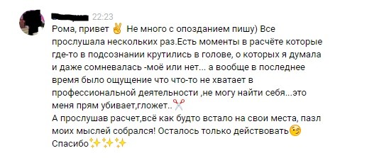 Этот расчет помог Ване найти себя и то дело, которое его вдохновляет до сих пор! Он предлагает мне провести вебинар и сделать такие расчеты для его подписчиков. Я сомневаюсь в этой затее, но соглашаюсь, ведь это интересный опыт. И тут я понимаю, что это то, что сейчас нужно от меня миру! Я принимаю решение, что буду проводить раз в неделю вебинары.